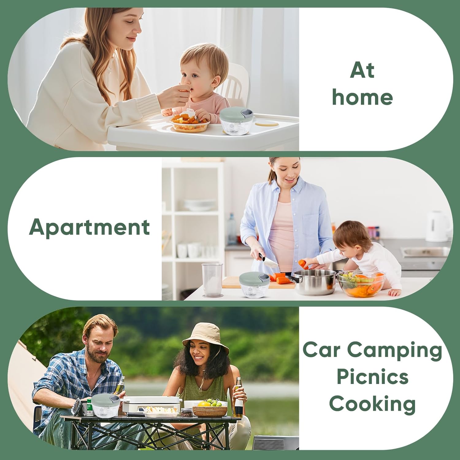 • Manual pull-string food chopper with 500 ml container